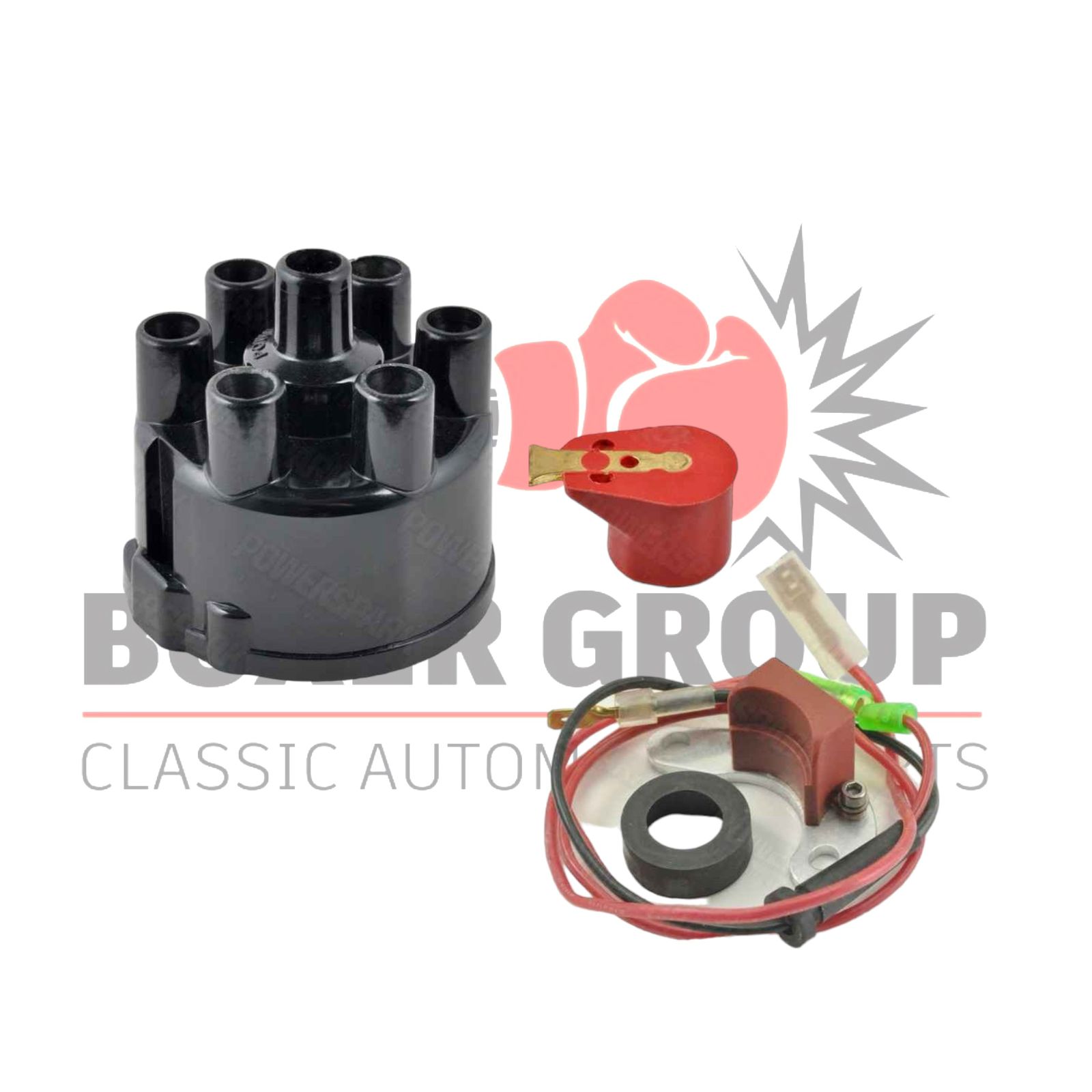 Lucas 45D6 Distributor Cap & Ignition Kit & Powermax Red Rotor Arm