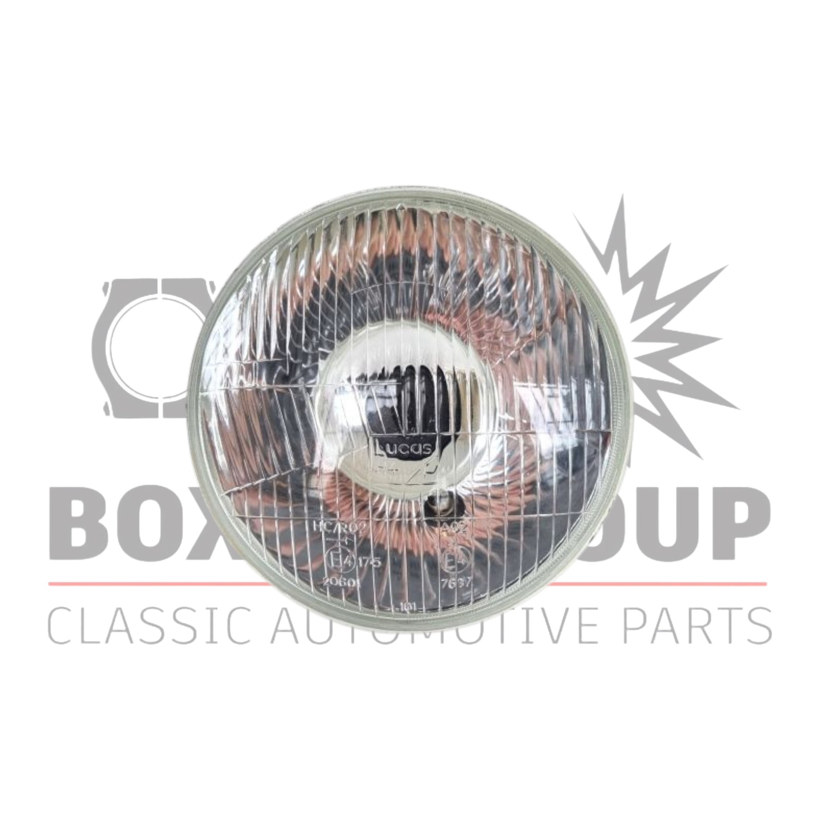 Lucas H4 halogen headlamp with sidelight. Halogen bulb not included. E-marked and for RHD models.